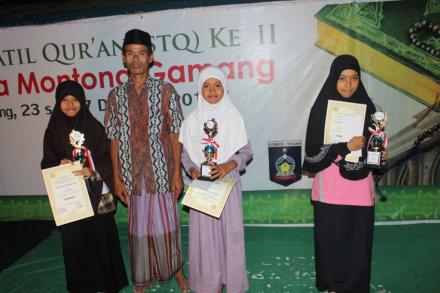 Montong Gamang- Loteng. Seleksi Tilawatil Qur’an (STQ) resmi ditutup tadi malam, (Senin,28 Desember 2015). Bertempat di Halaman Kantor Desa Montong Gamang penutupan tersebut berlangsung cukup meriah dan dihadiri oleh peserta dan tamu undangan. STQ sendiri ditutup langsung oleh Kepala Desa Montong Gamang, H.Muh.Amin Abdullah, S.Ag. Dalam sambutan penutupannya, Amin menyampaikan apresiasi dan ucapan terima kasih kepada Karang Taruna Urip Rahayu Desa Montong Gamang sebagai penyelenggara kegiatan STQ ini. Selanjutnya Amin juga menyampaikan komitmen Pemerintah Desa Montong Gamang untuk membina bibit yang muncul selama proses STQ berlangsung. “pasca STQ ini, kami akan melakukan pembinaan secara continue kepada generasi-generasi kita” ungkapnya. Diakhir sambutan, tak lupa Amin mengucapkan selamat kepada para pemenang. Suasana penutupanpun cukup meriah,disela-sela penutupan ada penampilan-penampilan Hadroh, Qasidah, tari kreasi dan lain sebagainya, tak lupa juga panitia membagikan doorprize kepada penonton yang hadir tadi malam. Antusiasme masyarakat pun tak kalah, masyarakat berbondong-bondong datang dari dusun-dusun di wilayah Desa Montong Gamang. Mereka ingin menyaksikan siapa yang menjadi pemenang disetiap mata lomba yang sudah di lombakan. Seperti yang diungkapkan oleh Parman, dia rela meninggalkan pekerjaan rumah demi menyaksikan apakah anaknya mendapatkan juara atau tidak pada mata lomba yang dia ikuti. “ anak saya ikut lomba, mudah-mudahan dia mendapatkan juara” harapnya disela-sela kegiatan. Pengumuman pemenang diumumkan secara resmi oleh Ketua Dewan Hakam, Saharudin. Adapun pembagian hadiah langsung diberikan oleh Kepala Desa dan perwakilan tamu undangan yang hadir. Untuk adik-adik yang mendapatkan juara selamat ya…. ;-) *J*