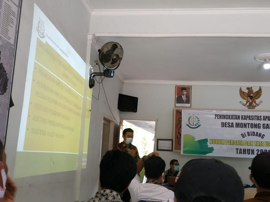 Dalam pelatihan ini, materi yang di sampaikan terkait pengelolaan Administrasi Desa untuk semua perangkat desa montong gamang, dan bagaimana fungsi Perdata dan Tun pada Kejaksaan R.I bagi lembaga negara Instansi Pemerintahan, jadi jika terdapat penyelewengan dalam Administrasi desa maka disitulah fungsr dari Kejari untuk menjamin penegakan hukum, bantuan hukum, pertimbangan hukum, pelayanan hukum, dan tindakan hukum lainnya agar dapat melindungi hak-hak keperdataan masyarakat.